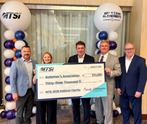 As MTSI celebrates 33 years in business, the company continues to live its 9th Core Value: Social Responsibility. In 2026, MTSI will partner with the Alzheimer’s Association as its National Charity and commit $33,000 to support the organization’s mission.